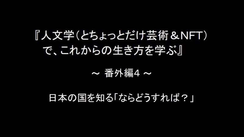電子書籍『人文学(とちょっとだけ仮想通貨&NFT)で、これからの生き方を学ぶ』の「番外編4、日本の国を知る「ならどうすれば?」」です。