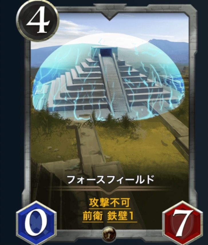 仲間を死なせない。リーダーも死なせない。さらに鉄壁でフォースフィールド自体もやられないというガチ強カードです😆ユニットやスペルの効果でフォースフィールドに攻撃力を付ければ向かってきた敵を薙ぎ払う子もできます!