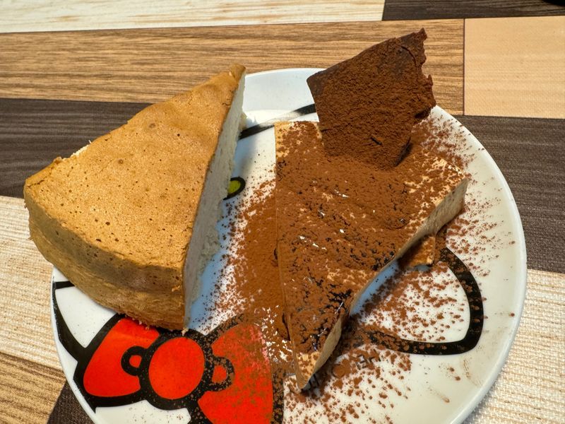 硬めで滑らかなムースのみのチョコケーキと、その材料で余った卵白を使ったモノ。