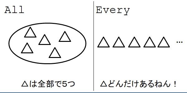それをきっかけに、"All"と"Every"のニュアンスの違いを考えてみました。