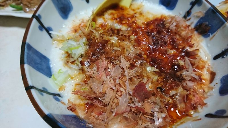 とろろを乗せたところを写真に撮ろうと思っていたのに