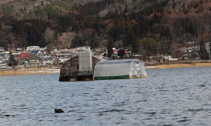 フロートを使って浮かせつつ同じ場所に係留さているらしい。後から聞いたけど、あの場所は水深20mと少しある。近くにあるけど思ったより深い湖だな。