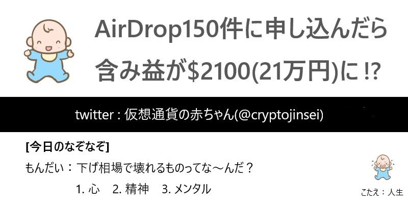 仮想通貨の赤ちゃん(@cryptojinsei)です。