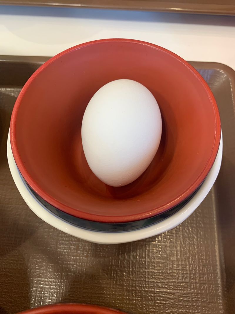 内側の赤い器は、既に生卵が入っているわけなので、既に殻が器についているので綺麗じゃないと考えると、中身は外側の白いのにいれる?
