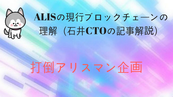 これらはあくまでも私見ですのでALISの見解についてはAMAや運営さんへTwitterなどへ質問していただくとよいかと思います。ALIS独自のことでなければTwitterなどで私に聞いていただいてもいいですよ。分かる範囲でおこたえします〜。