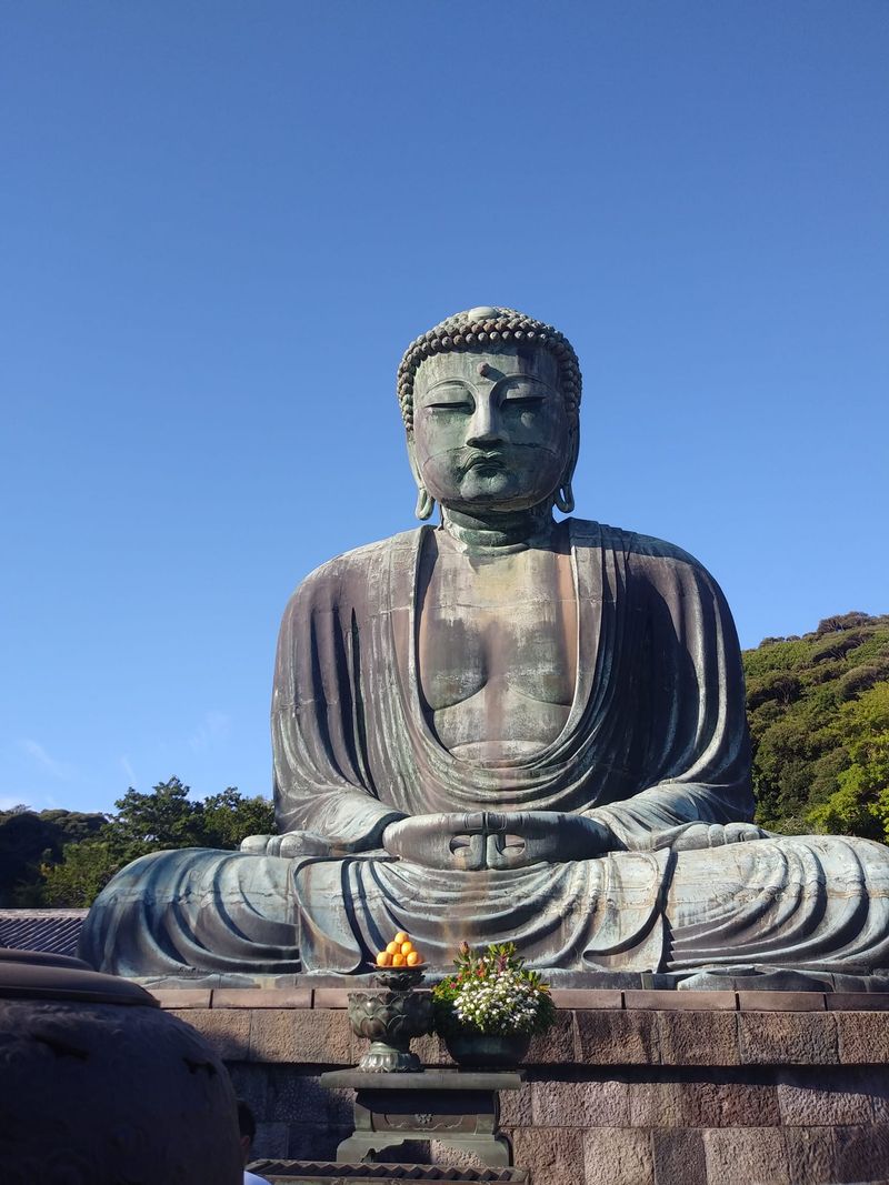鎌倉大仏は東大寺大仏と異なり、大仏殿に格納されていません。露座の大仏です。青空に大仏が映えます。大仏の中に入ることもできます。大仏の草鞋も飾られています。大仏の草鞋も巨大です。