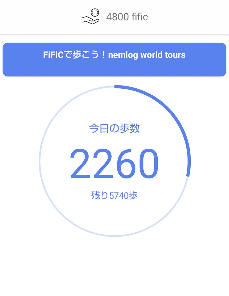 1日の目標歩数(8,000歩)を歩くことで加盟店で使えるコインをもらうことができるというので4,800fificをもらったものの・・・