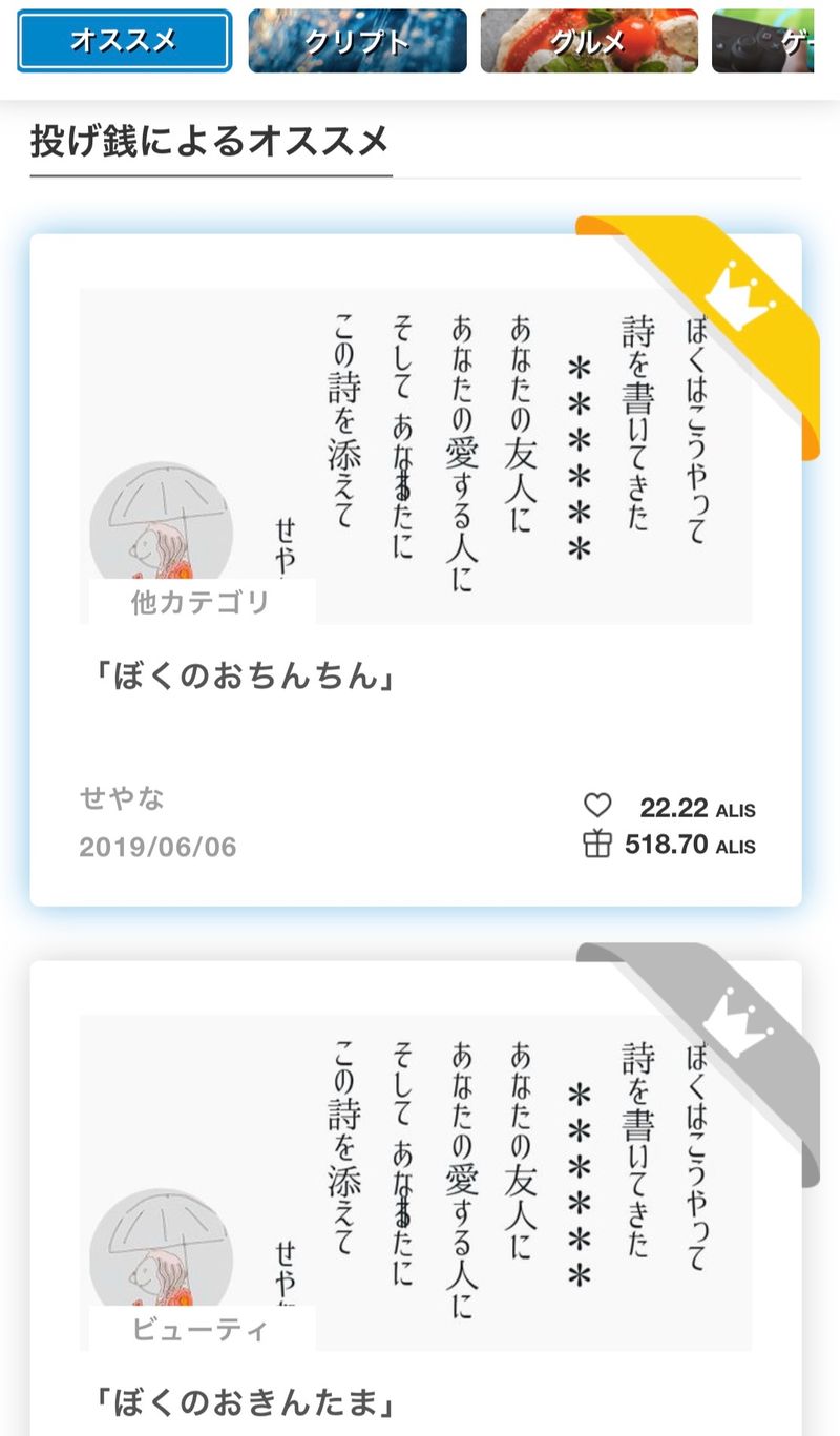 個人的には“問題の可視化”が最速かつユーモラスな形で成された点が非常に良かったし面白かったんですが、他の多くのユーザーにとってALISが既にプラットフォームとして思慮分別のある大人としての“キレイな顔”を必要とされている場になっていた事に気づかされました。