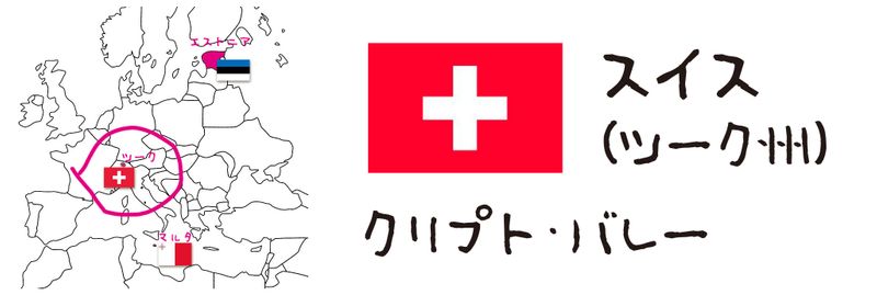 ・スイスのツーク州は税金が安く、仮想通貨ビジネスに特殊なライセンスが必要無いため関連企業が集まることから、クリプト・バレーと呼ばれています。