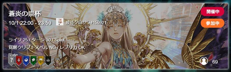 さすがに絶望してスマホ投げちゃう人多そうだなぁと思って当日は私が「接待クロサワ」として、蒼炎を使いやすそうなデッキで参加しました。