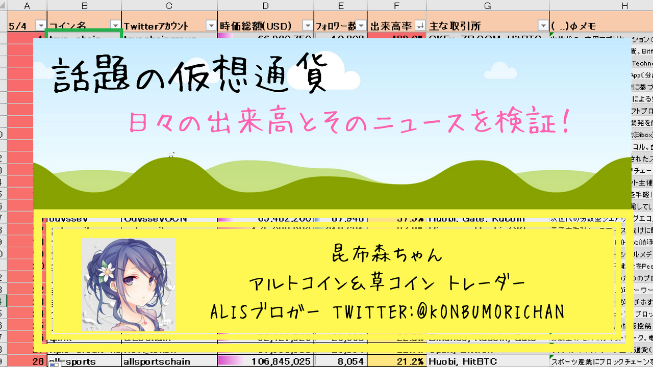 ということで、時価総額上位500の仮想通貨のうち、過去1日で出来高の大きかった通貨とその要因を探っていきます!