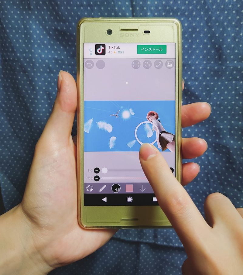 私はスマホにアイビスペイントというお絵描きアプリを入れ、指を使って漫画を描いています。
