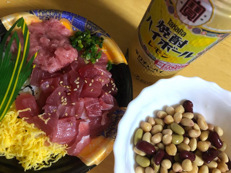 今日はどうしてもマグロ食べたくて、マグロ漁船のお店から出てるマグロ丼を購入してきました👍