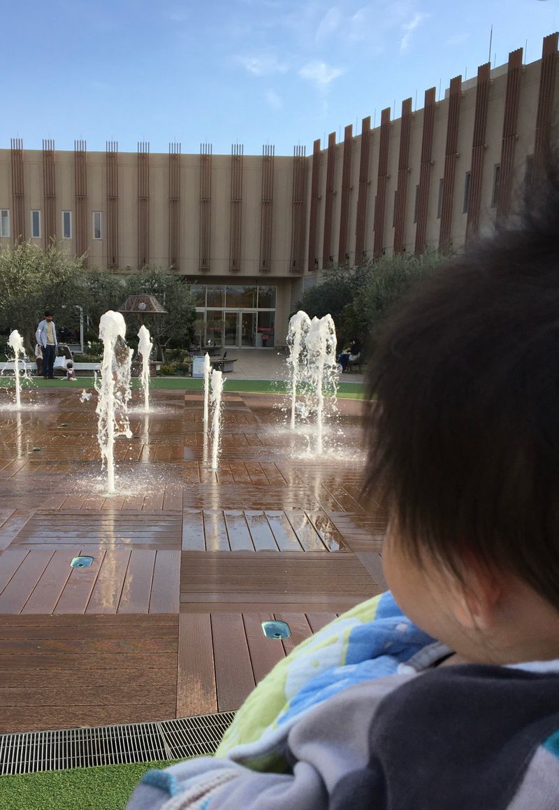 音楽に合わせて噴水の勢いが増すとビックリしていましたが、そのあとすごく楽しそうに笑っていました。