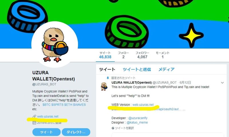 もらったコインの現在の保有数を確認するには、さっきのうずらウォレットのアカウントに直接DMでコマンドを入れて確認しよう。