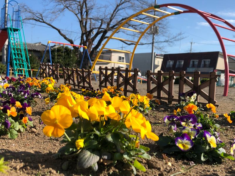 公園の花壇では、お花が陽射しを浴びて、ニッコリ!