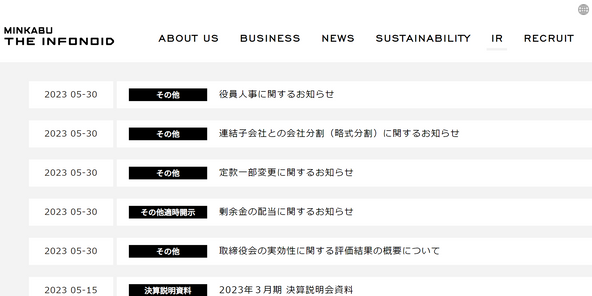 ミンカブ IR更新 ニュース 2023.5.30更新