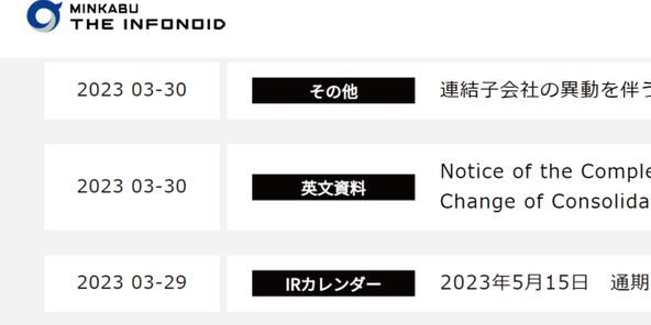 ミンカブ IR更新 ニュース 2023.3.30更新