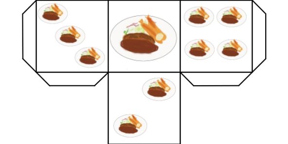 【サイコロ展開図作品】ハンバーグと海老フライ