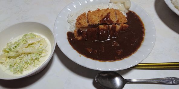 今日のおうちごはん~カツカレーとコールスローサラダ~