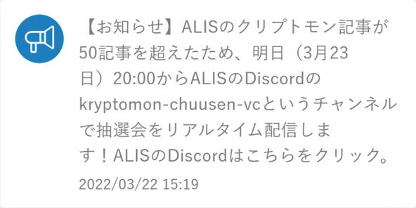 ALIS-Discord 卵抽選会はリアルタイム配信で。