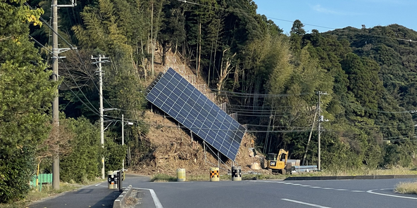 もはや芸術作品、山の急斜面に太陽光パネル。