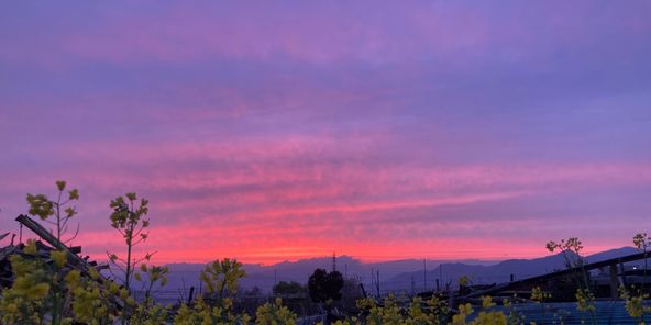 春の夕焼けを眺める贅沢なひと時。