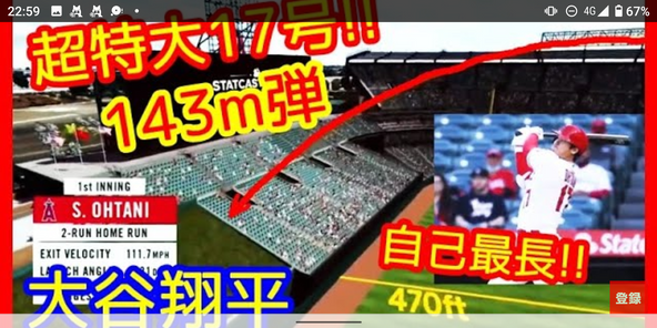 大谷翔平自己最長143メートル17号2ランホームラン!!!