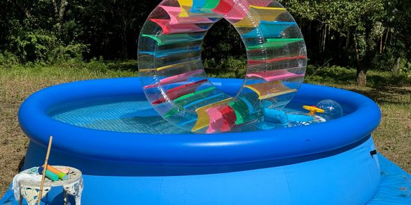 子供も大人も大喜びの回る日陰付き浮き輪、ローリングウォーターホイール