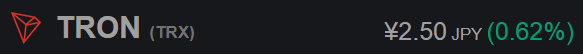 1TRX=2.5円で着実に相場を上げています。