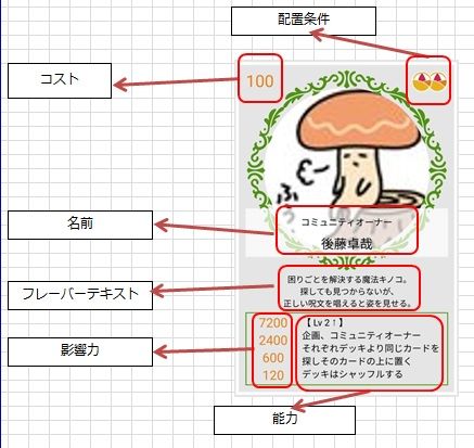このカードを配置するために必要な条件。アイコンの数分のマスに、同コミュニティのカードが配置されている必要がある。